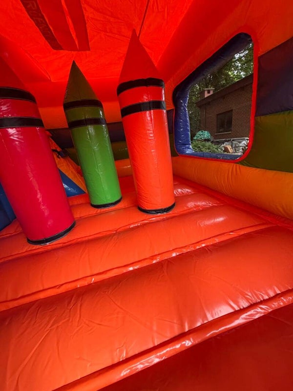 Zoek je een kasteel waarbij de kinderen zich kunnen uitleven op obstakels en ook voorzien van een lange glijbaan. Dan raden wij het springkasteel potlood aan.
